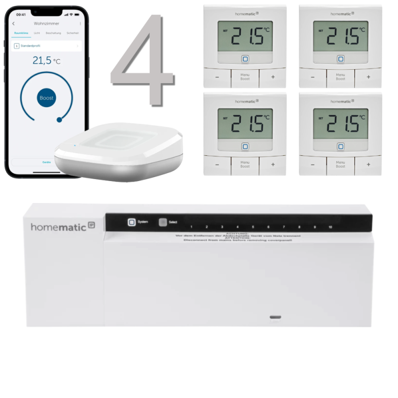 4 Homematic IP Wandthermostate für bis zu 4 Räume (je nach Paketwahl) - 154666