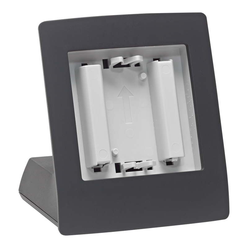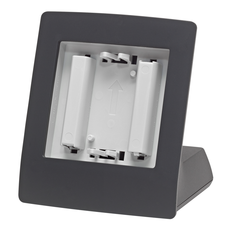 Der Tischaufsteller eignet sich für alle batteriebetriebenen Homematic IP Geräte im 55er-Format. Durch Batteriebetrieb und rutschfestem Standfuß können Sie den Standort flexibel wählen – ob auf dem Schreibtisch, im Wohnzimmer oder neben dem Bett.