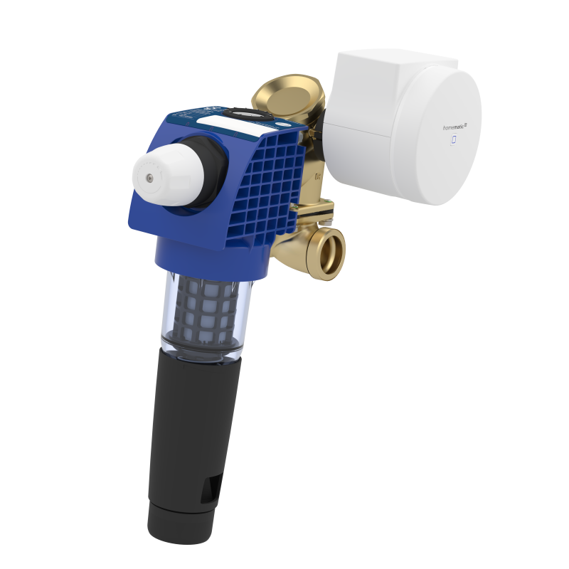 Die Installation erfolgt durch eine qualifizierte Fachkraft direkt an der Hauptwasserleitung hinter dem Wasserzähler und vor der Hausverteilung. Das kompakte Gerät vereint Wasserstopp, Rückspülfilter sowie Druckminderer und ersetzt so ganz einfach bestehende Komponenten. Die Spannungsversorgung erfolgt über ein Steckernetzteil, während integrierte Akkus die Funktion auch bei einem Stromausfall gewährleisten.